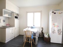 Jääkaappi, liesi, astianpesukone, tasot, kaapistot. Keittiö on remontoitu 2013.