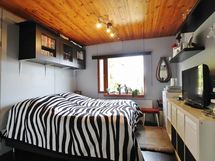 Suihku, pesukoneliitäntä, erillinen wc. Saunassa on puilla lämpiävä kiuas ja puilla lämpiävälle vesipadalle on varaus.