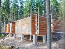 Päämökki veistetty tonttipuustosta paikalla, joten se istuu täysin ympäristöönsä. Lisänä kaksi varastorakennusta tontin takaosassa.