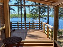 Keittiökalusteet ja kaapistot saa ostaja hankkia mieluisensa. Samoin verhot. Mökkiä käytetty sen valmistumisen jälkeen v 2017 hyvin vähän. Viime vuonna rakensin terassin ja siihen katoksen sekä kesäkeittiön sekä vaihdoin uuden oven pääsisäänkäyntiin. Muut viimeistelyt ovat omia ostajan lisävalintoja. Varustetaso on tällä hetkellä melko yksinkertainen. Idea kumpuaa saaristolaisen ajatusmaailmasta !! Mietippä sitä ja rohkaistu ja karaistu! Meitä on saaressa jo asukkaita viidesssä mökissä. Maistereita ,tohtoreita ja kirvesmiehiä! Erähenkisiä.