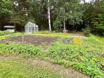 Tasainen ja suojaisa piha tarjoaa mahdollisuuksia monenlaiseen vapaa-ajan viettoon. Pihapiiristä löytyy myös leikkimökki, kasvihuone, puutarha ja kasvimaa – paikka, jossa voi viljellä omia vihanneksia ja nauttia luonnonläheisestä elämästä.