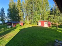 Kesämökki oheisrakennuksineen Polvijärven Kuorevaarassa, Höytiäisen rannalla.