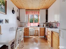 Liesi: keraaminen, sähköliesi. Työtasot: laminaatti. Kylmäsäilytys: jää/viileäkaappi.