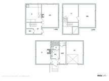 Lattia: Keittiössä: lauta. Olohuoneessa: lauta. Makuuhuoneessa: lauta. Saunassa: betoni. Seinät: Keittiössä: kaakeli, maalattu. Olohuoneessa: maalattu, tapetti. Makuuhuoneessa: maalattu, tapetti. Saunassa: puu.