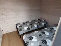 Nukkuma rakennus on myös vaihtolavakiskoilla varustettu. Siellä on myös lämmitin(polttoaineella toimiva ilma Webasto) samoin myös aurinkopanelit ja 225amh akku ja kännykän latauspaikat. huoneissa myös led valot. 2 erillistä huonetta missä molemmissa on 2 sänkyä.
