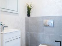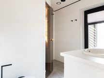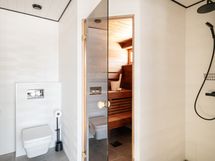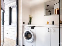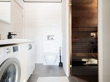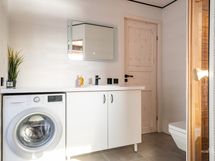 Varustus: pesukone, lattialämmitys, wc-istuin, suihku, kiinteät valaisimet, kylpyhuonekaapisto. Varustus: lattialämmitys.