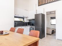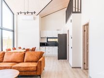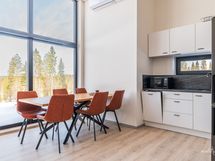 Hiihtoladut kulkevat läheisyydessä ja Syötteen tunturimaisemat avautuvat olohuoneen suurista ikkunoista. Loma-asunnon pohjaratkaisussa on kolme makuuhuonetta + parvitila, joten tilaa riittää isollekin porukalle. Lattiamateriaalina on kulutusta kestävä vinyylilankku sekä laatta.