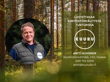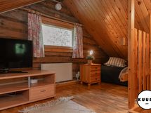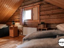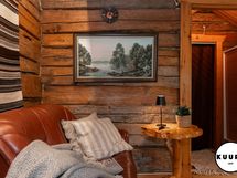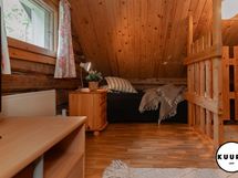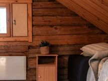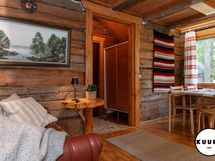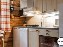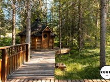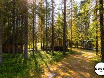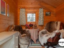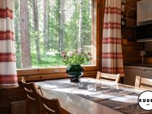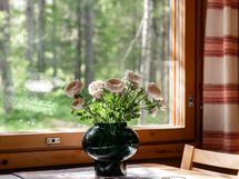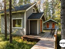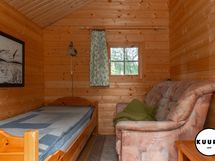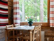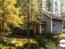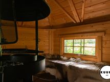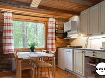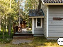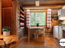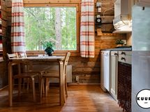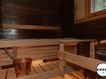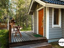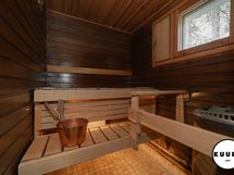 - Kiuas: Sähkökiuas. Kompakti sauna tarjoaa mukavat löylyhetket mökkeillessä. Saunan ikkunasta näkymät metsäiselle pihamaalle.