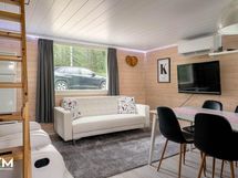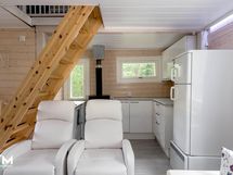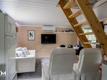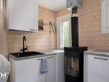 Mökissä on modernia mukavuutta tuomassa sähköinen lattialämmitys sekä ilmalämpöpumppu, jotka takaavat viihtyisyyden ympäri vuoden.