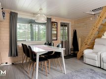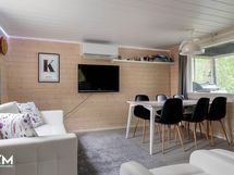 Ilmalämpöpumppu (etäohjauksella), lämminvesivaraaja, palju (Kirami), laituri, soutuvene (sähkö perämoottorilla), irtaimisto