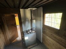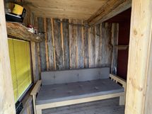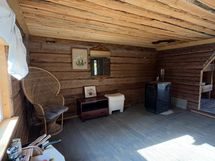 Pieni n. 30neliön mökki, jonka pihapiirissä ulkosauna n. 10neliötä ja korkea ulkokatos n. 25 neliötä.