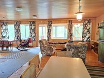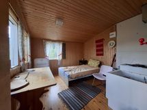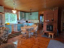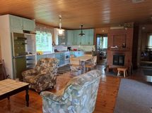 Keittiön varusteet: Jääkaappipakastin. Liesi: Sähköhella ja valurautaliesi. Työtason materiaali: Laminaatti.