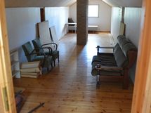 Iso sivukuisti. Yläkerrassa huone.