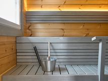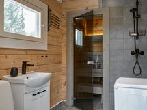 Samassa rakennuksessa puulämmitteinen sauna ja pyykkihuolto.