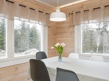 Oleskelutilaa on tupakeittiössä, erillinen ruokailutila