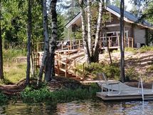 - Muut kaupan kannalta merkittävät tiedot: Hyvin varusteltu mökki rauhallisella paikalla Kymijoen leveässä suvanto kohdassa. Näkymät joelle.