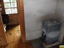 -Vieressä hyvä puulämmitteinen sauna jonka pesuhuoneessa on puulämmitteinen vesipata.