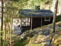 -Mökille kävelymatkaa n. 250 m, saaren sisäosassa, suojassa tuulilta.