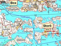 -Storön saari sijaitsee vajaat 12 km länteen Barösundin lautalta, Rösundin