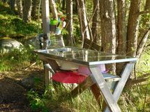 Laituri on iso, sillä on myösiso pöytä ja penkit, soveltuu hyvin oleskeluun ja auringonottoon.