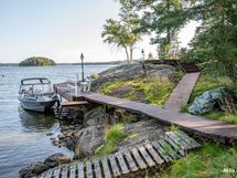 HERMANSÖ 1,272 ha / vattenomr 0,43 ha Havsstrandfastighet ett stenkast från djup hamn på fastland. Fritidspärla med kvällssol och öppna havsvyer i skyddad djup hemmavik med robust brygga och uppgraderad boj. Hemtrevlig och tilltagen byggnad 4 r,k,bdr b. 1978 och uppgraderad på 2000-talet. El- och vedeldning samt luftvärmepump. Ekonomibyggnad och en prima jordkällare. Fastigheten gränsar till strand i både norr och söder. Snabbt ledig. Båt- och bilplats på ca 5 min:s avstånd på fastland.