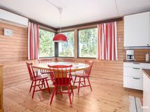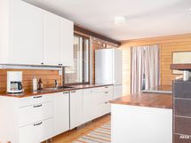 Liesi: keraaminen, erillisuuni. Työtasot: puu. Kylmäsäilytys: jääkaappi/pakastin. Varustus: astianpesukone, kiinteät valaisimet. Keittiökaapit ja koneet uusittu v. 2012.