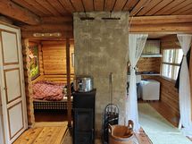 Kesäasuttava hirsimökki isolla rantatontilla