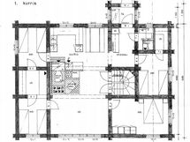- Talossa pohjapinta-ala 116m2, joka on osin kolmessa kerroksessa. Mökissä neljä makuuhuonetta, WC, tupa-keittiö keskimmisessä kerroksessa. Ylimmässä kerroksessa yksi huone ja sisäparveke päädyssä. Alakerrassa pukuhuone sauna, pesutilat, WC, kokoustila ja varastotilaa.