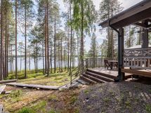 Tervetuloa tutustumaan tähän hurmaavaan Kontion hirsimökkiin, joka ihastuttaa niin laadukkaalla rakenteellaan kuin upealla sijainnillaankin!