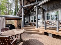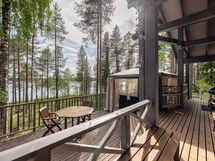 Olohuoneesta avautuu suoraan suuri terassi – kuin toinen olohuone kesäisin. Täydellinen paikka aamukahveille, auringosta nauttimiseen tai illanviettoon hyvässä seurassa järvimaisemaa ihaillen.