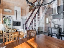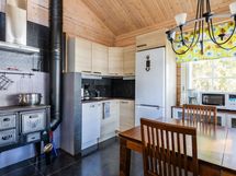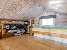 Sisätiloissa on kaksi viihtyisää makuuhuonetta ja lisäksi tilava parvi, joka toimii mainiosti lisämajoitustilana esimerkiksi lapsille tai vieraille. Keittiön sydän on tunnelmallinen puuhella. Mökissä on myös etäohjattava ilmalämpöpumppu, joka tarjoaa mukavuutta ympäri vuoden.