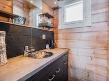 Vesijärjestelmässä on kesävesi suoraan Pirttijärvestä, joka suodatetaan kolmiportaisesti – turvallinen ja huoleton ratkaisu mökkikäyttöön. Keittiössä nautit myös arjen mukavuuksista, kuten astianpesukoneesta.