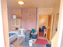 Mökin sisällä on makuuhuone.Saunakamarissa on porinmatti johon mahtu hienoiosti sänky myös. Lisärakennuksessa on makuuhuone vieraille
