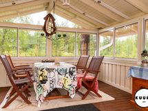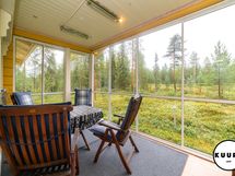 - Kohteessa on lasitettu terassi, joka tarjoaa viihtyisän paikan ruokailuhetkiin ja rentoutumiseen. Kesäpäivinä siellä on mukava nauttia raittiista tunturi-ilmasta säältä suojassa, ja tila toimii mainiosti myös oleskeluun pitkälle syksyyn.
