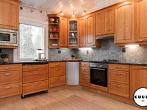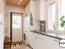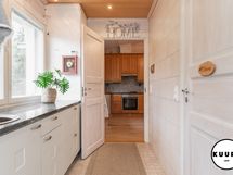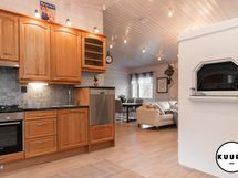 - Keittiön varusteet: Jääkaappi, uuni, mikroaaltouuni, liesi, liesituuletin ja astianpesukone. Liesi: Kaasuliesi. Työtason materiaali: Kivi. Keittiö on tavanomaista tilavampi ja tarjoaa erinomaiset puitteet ruoanlaitosta nauttivalle. Tyylikkäät kivitasot tuovat sekä kestävyyttä että näyttävyyttä arkeen. Keittiöstä löytyy runsaasti lasku- ja säilytystilaa sekä kaikki tarvittavat kodinkoneet, jotka tekevät arjesta sujuvaa. Tämä keittiö kutsuu niin arjen kokkailuun kuin isommankin porukan kestitsemiseen.