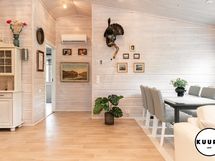 - Lämmin autotalli. Lisätietoja säilytystiloista: Kohteesta löytyy noin 40 m² lämmin autotalli, joka on äärimmäisen kätevä arjessa. Tila on poikkeuksellisen hyvä motoristeille ja kelkkailijoille, jotka haluavat huoltaa ja korjata moottoripyöriä, moottorikelkkoja, mönkijöitä tai harrasteautoja. Autotalli soveltuu erinomaisesti myös nikkarointiin, rakentamiseen tai muuhun harrastetoimintaan. Lisäksi tilasta löytyy käsienpesuallas ja wc-istuin, mikä lisää käyttömukavuutta.