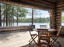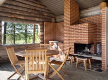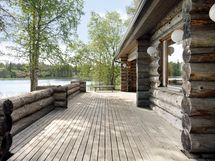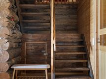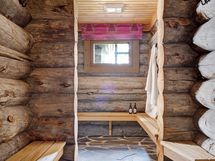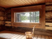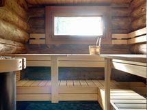 - Kiuas: Sähkökiuas. Seinät kelohirttä ja lattia laattaa.