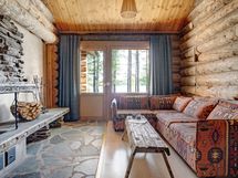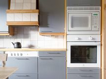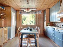 - Jääkaappi, uuni, keraaminen liesi, mikroaaltouuni, astianpesukone, puuhella, leivinuuni. Seinät paneelia ja lattia saarniparkettia.