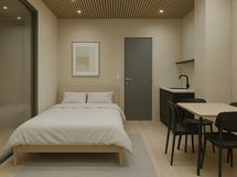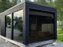 Täydellinen moderni mökki ympärivuotiseen käyttöön. Täysin varustettu mökki 8x3m. KE/OH 17,2m2 + S/PE 4,4m2 sisäkorkeus on 2,66m