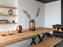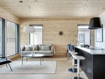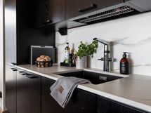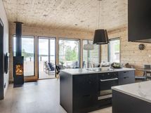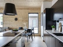 - Jää-pakastinkaappi, Induktioliesi, Integroidut koneet, Kivitasot, Paljon kaappitilaa, Paljon työskentelytilaa, Tilaa isolle ruokapöydälle