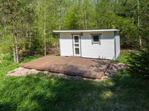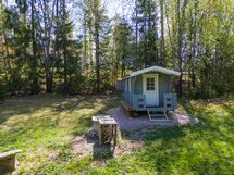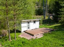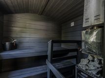 - Kuvaus: Hirsirakenteinen, uudella puukiukaalla varustettu sähköistetty pihasauna, jossa myös pukuhuone ja katettu pieni terassi. . puukiuas