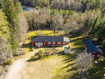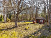 - punainen talo, pihasauna ja lampi omalla 3800 m² suojaisalla tontilla