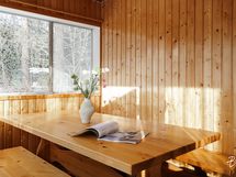 Erillinen saunarakennus täydentää kokonaisuuden erinomaisesti. Lasitettu veranta tiililattioineen toimii viihtyisänä oleskelutilana, ja takkahuone tarjoaa tilaa myös yöpymiseen. Rakennuksessa on lisäksi makuuhuone, pieni keittiö sekä tunnelmallinen puulämmitteinen sauna, pesutilat ja kompostikäymälä. Pesuvedet saadaan pihassa sijaitsevasta porakaivosta. Rakennusten yhteispinta-ala on arviolta noin 64 m².