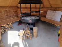 Iso liiteri/varastorakennus, jossa hyvin tilaa polttopuille ja välineille