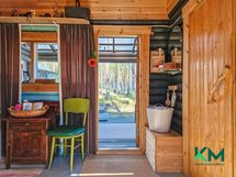 - Sauna saunatuvalla, palju, hirsiaitta, puucee, grillikota, liiteri, varasto