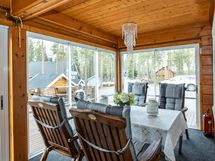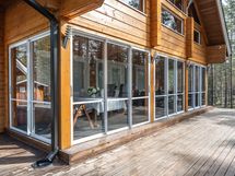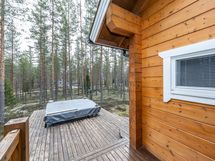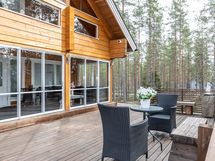 Tilavat terassit ja parveke, joilta avautuvat kauniit näkymät ympäröivään luontoon. Terassilla myös oma poreamme. Alue tarjoaa mahdollisuuksia monenlaiseen ulkoiluun, ja läheinen järvi sekä metsä tarjoavat upeat puitteet luonnossa liikkumiseen.