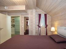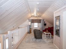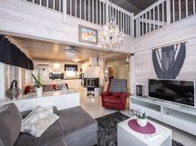 Mökissä on tilava tupakeittiö, jossa modernit keittiövarusteet, kuten induktioliesi ja kivitasot. Kolme makuuhuonetta tarjoavat runsaasti tilaa perheelle tai vieraille. Kaksi kerrosta mahdollistavat erinomaisen tilanjaon, ja lämmön varastoiva takka luo tunnelmallista lämpöä viileinä iltoina.