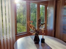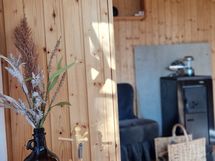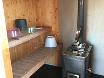 Mökissä on lasitettu kuisti, josta on näkymät merelle. Mökistä löytyy pieni takka, keittiössä kaasuhella/uuni. Aurinkokennolla saisi sähköt, niin keittiöön voisi laittaa esimerkiksi jääkaapin.