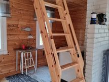 Mökin tilat ovat kompaktit mutta toimivat. Alakerran tupa on kodikas ja valoisa, takka luo lämpöä ja tunnelmaa. Yläkerran parvi tarjoaa lisätilaa majoittumiseen. Keittiössä on sekä kaasuliesi että puuhella, mikä tekee ruoanlaitosta vaivatonta ja ekologista.
