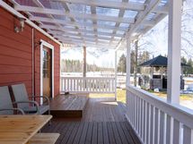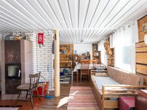 The cabin features a spacious living area, a practical kitchen, and a cozy bedroom, all creating a warm and homely atmosphere. The yard also includes a separate outdoor sauna, a storage building, a woodshed, and a comfortable barbecue shelter – the perfect place to enjoy summer evenings and good company.